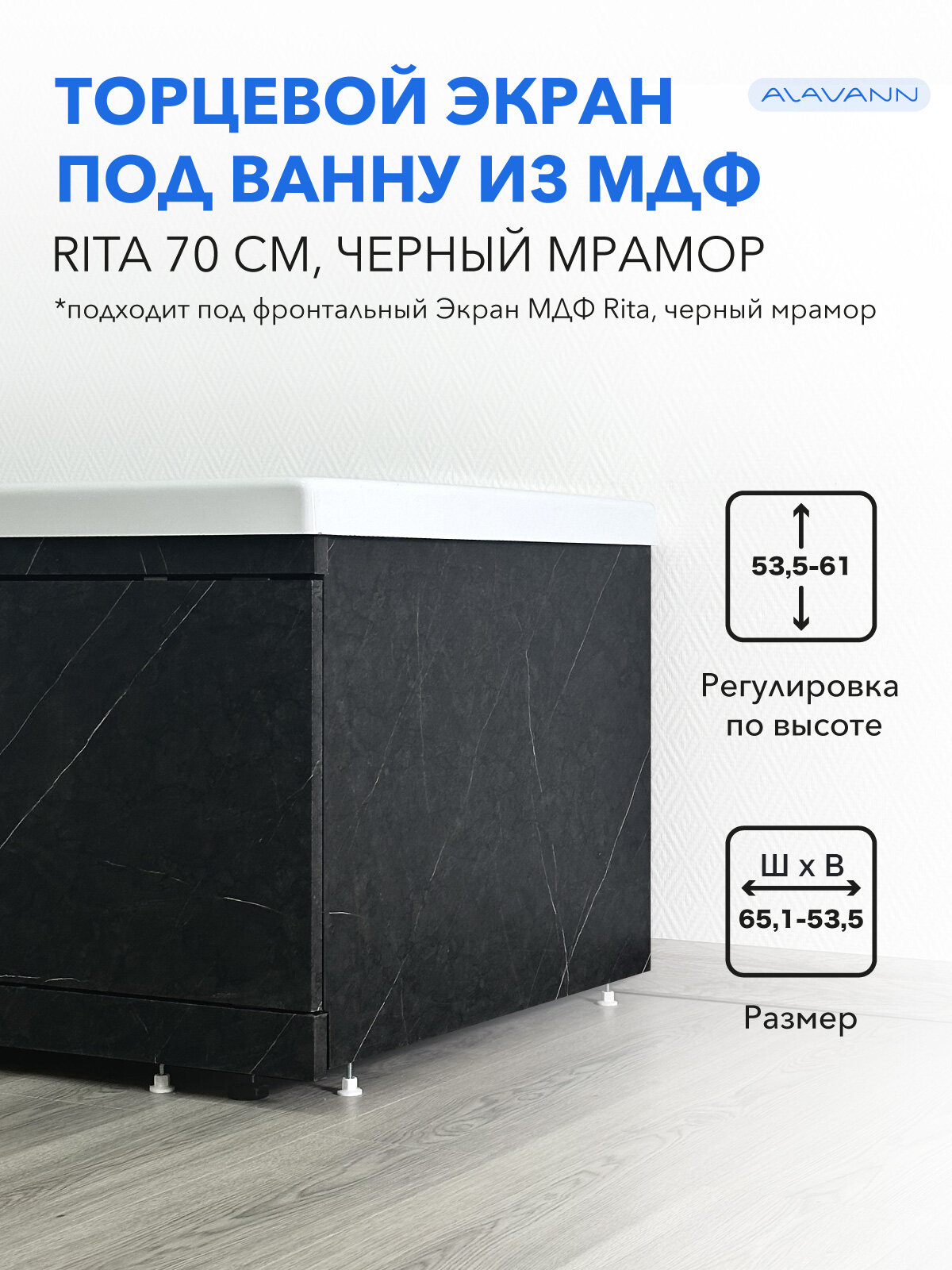 Торцевой экран под ванну Rita 70 см черный мрамор, из МДФ, влагостойкий: сравнение цен, характеристики, фото, актуальное наличие и цены.