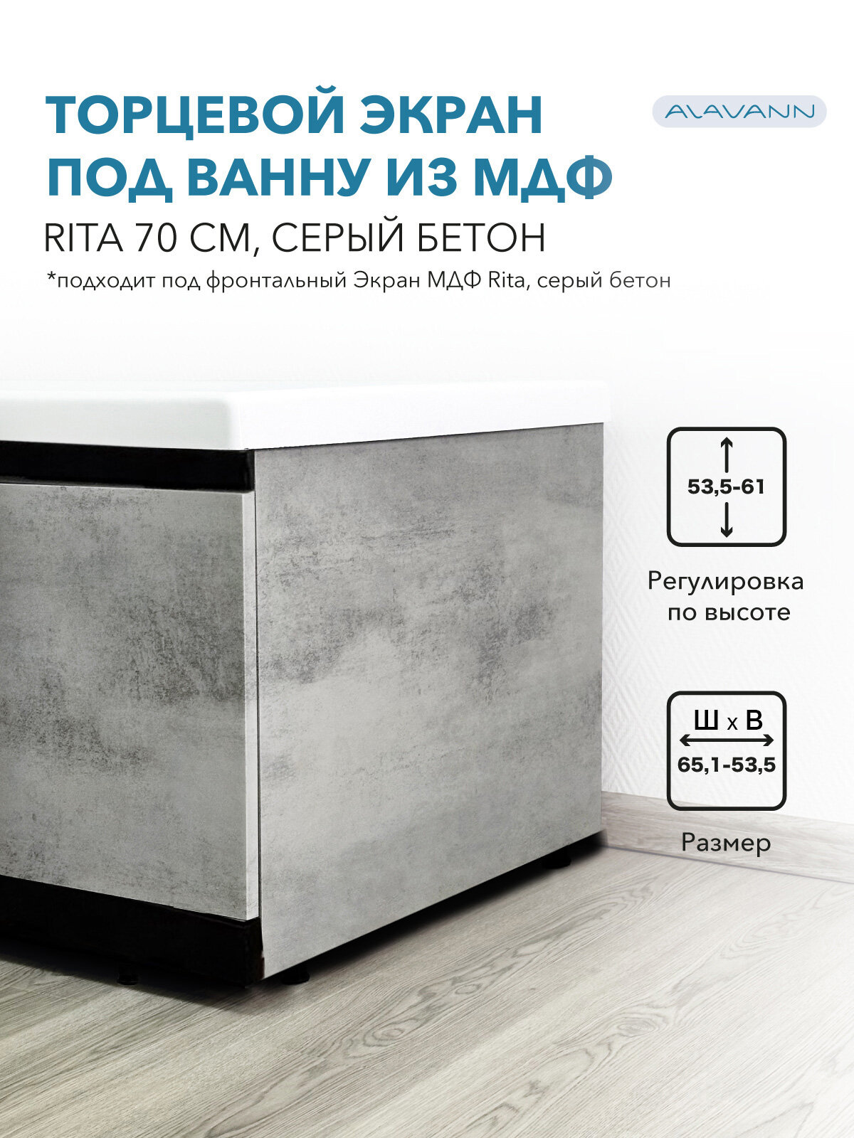 Торцевой экран под ванну Rita 70 см серый бетон, из МДФ, влагостойкий: сравнение цен, характеристики, фото, актуальное наличие и цены.