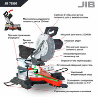 Купить Торцовочная пила с протяжкой JIB 7255G с доставкой по всей России. Торцовочная пила с протяжкой JIB 7255G: сравнение цен, характеристики, фото, актуальное наличие и цены.