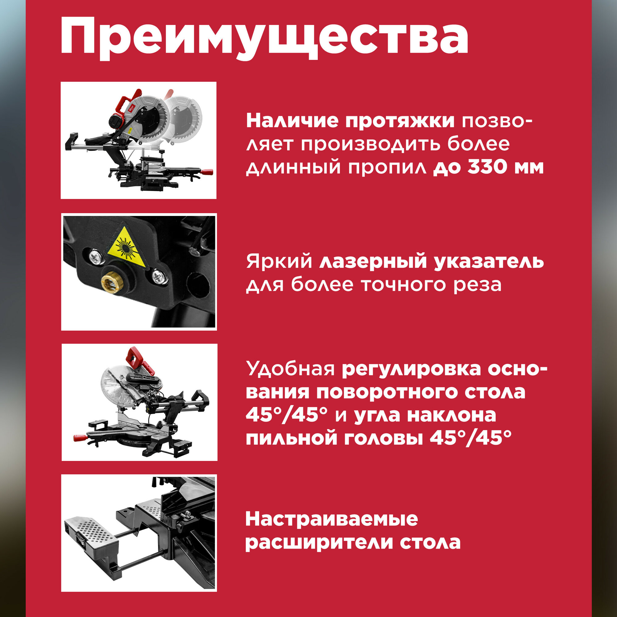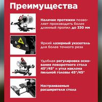 Пила торцовочная WORTEX MS 3020 LB (0329127) обладает мощным двигателем с ременной передачей, что в свою очередь делает его более надежным и менее шумным, имеется система пылеудаления, лазерный указатель для более точного реза, металлические скользящие полозья, плавный ход реза, система быстрого зажима заготовки, точный рез. Быстрая регулировка глубины и ширины реза. Правый/левый наклон пильной головы. А так же наличие ребер жесткости в основании придает дополнительную мощность конструкции, что очень важно для торцовочной пилы. Параметры резки: 0°x90° 330 x 105 мм; Лево: 0°x45° 330 x 60 мм; Право: 0°x45° 330 x 33 мм; Лево: 45°x45° 230 x 60 мм; Право: 45°x45° 230 x 33 мм; 45°x90° 230 x 105 мм.