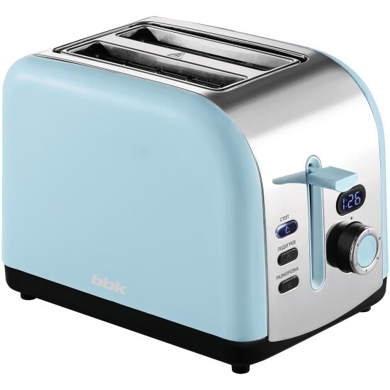Купить Тостер BBK TR75, 800Вт, дисплей, автоматическое центрирование, 2 тоста, цвет голубой с доставкой по всей России.