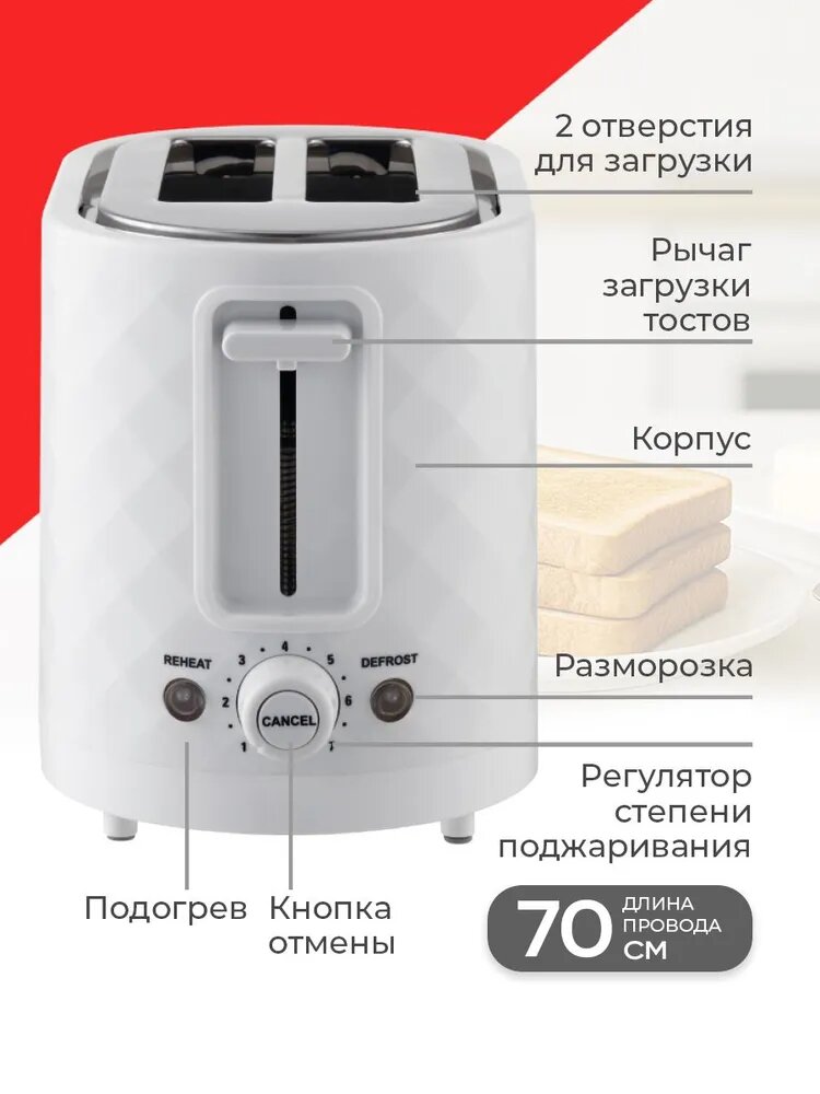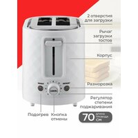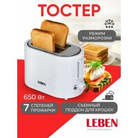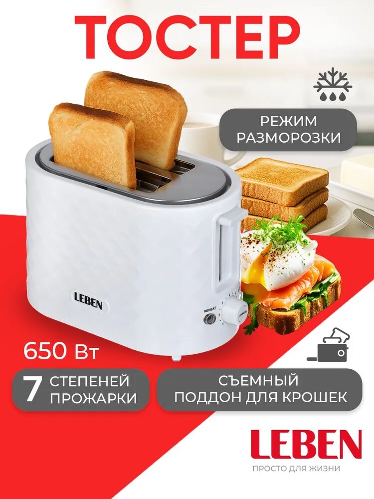Тостер для хлеба LEBEN, на 2 тоста, 650 Вт, 7 степеней обжаривания, поддон для крошек, режим разморозки, белый: сравнение цен, характеристики, фото, актуальное наличие и цены.