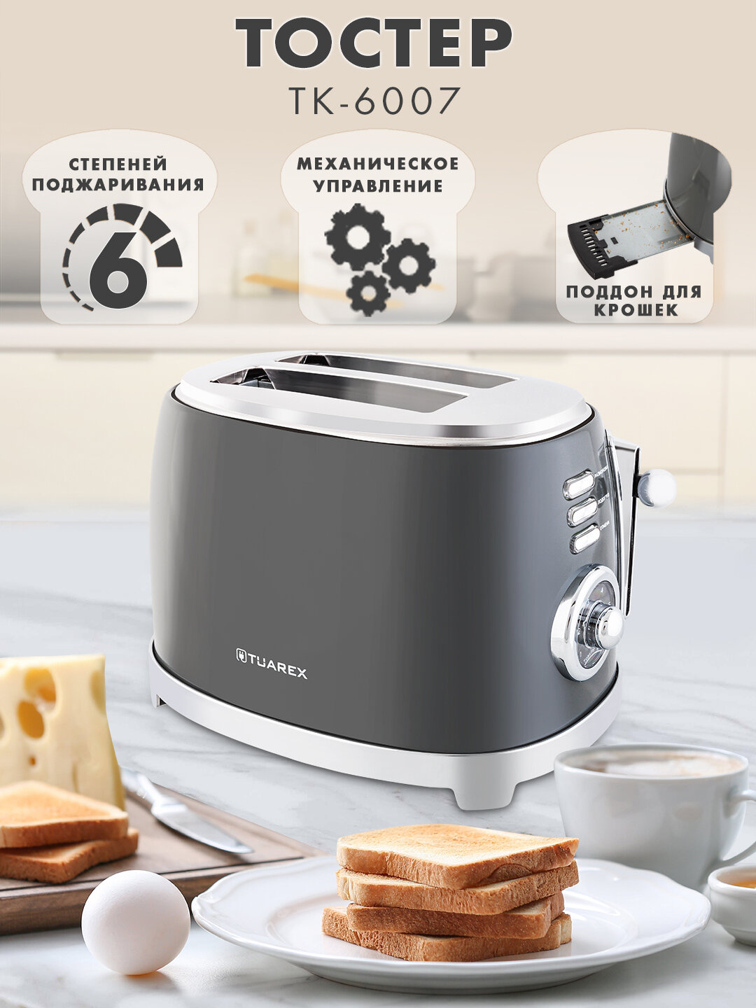 Купить Тостер для хлеба TUAREX TK-6007 / 850 Вт / 6 степеней поджаривания с доставкой по всей России. Тостер для хлеба TUAREX TK-6007 / 850 Вт / 6 степеней поджаривания: сравнение цен, характеристики, фото, актуальное наличие и цены.