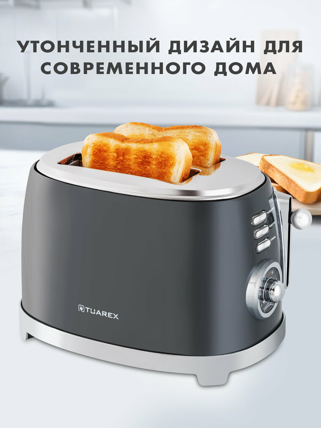 Тостер TUAREX TK-6005, 6 режимов, мощность 800 Вт, черный/светлый серый