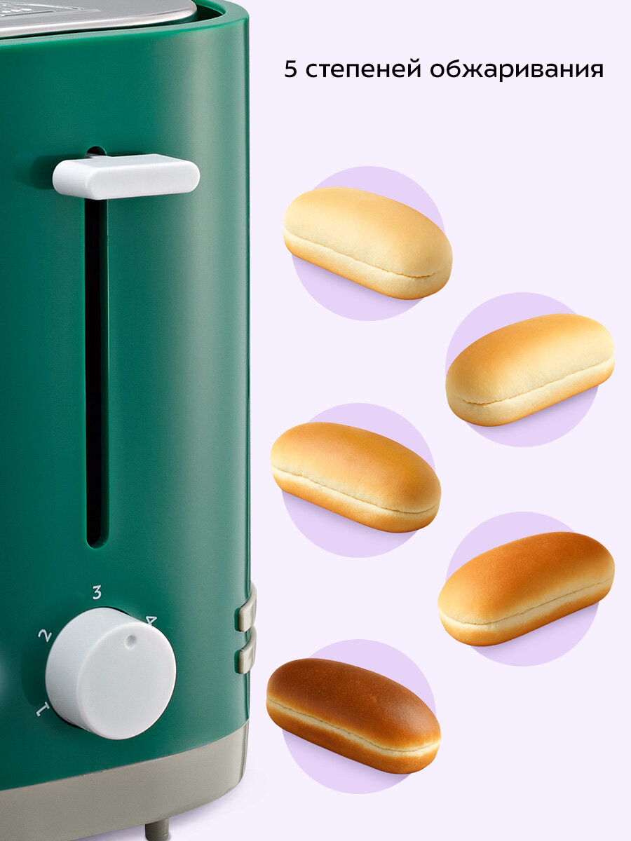Фаст-фуд в домашних условиях Тостер для хот-догов Kitfort КТ-6940 позволяет совместить популярный фаст-фуд и домашнюю готовку. Несколько минут, минимум усилий – и у вас в руках свежий хот-дог! Контролируйте процесс Тостер позволяет управлять мощностью обжаривания, выставляя мощность от самого слабого (1) до «хрустящей корочки» (5). Также предусмотрена кнопка «Стоп» - она позволяет экстренно остановить процесс обжаривания. Лёгок в очистке После каждой обжарки тостер легко очистить – в дно встроен лоток для накопления крошек. Его достаточно достать из нижней части тостера, вытряхнуть и снова вернуть на место – тостер вновь готов к работе! Главное – безопасность! Чтобы приготовление было легче, в структуру тостера интегрирован специальный держатель для сосисок, который поможет достать их из тостера. Также в комплекте идут щипцы, которые помогут достать булочки из отверстий и минимизировать вероятность обжечься. Пара минут – и всё готово! По окончании приготовления тостер автоматически отключается, и вы с лёгкостью можете достать сосиски и булочки для приготовления вкусных хот-догов. В качестве заправки рекомендуем смешать кетчуп и горчицу – должно получится очень вкусно!