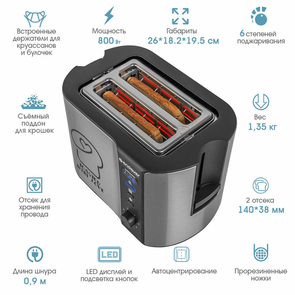 | Дополнительные функции | автоматическое поднятие тостов, автоматическое центрирование тостов, кнопка отмены |