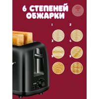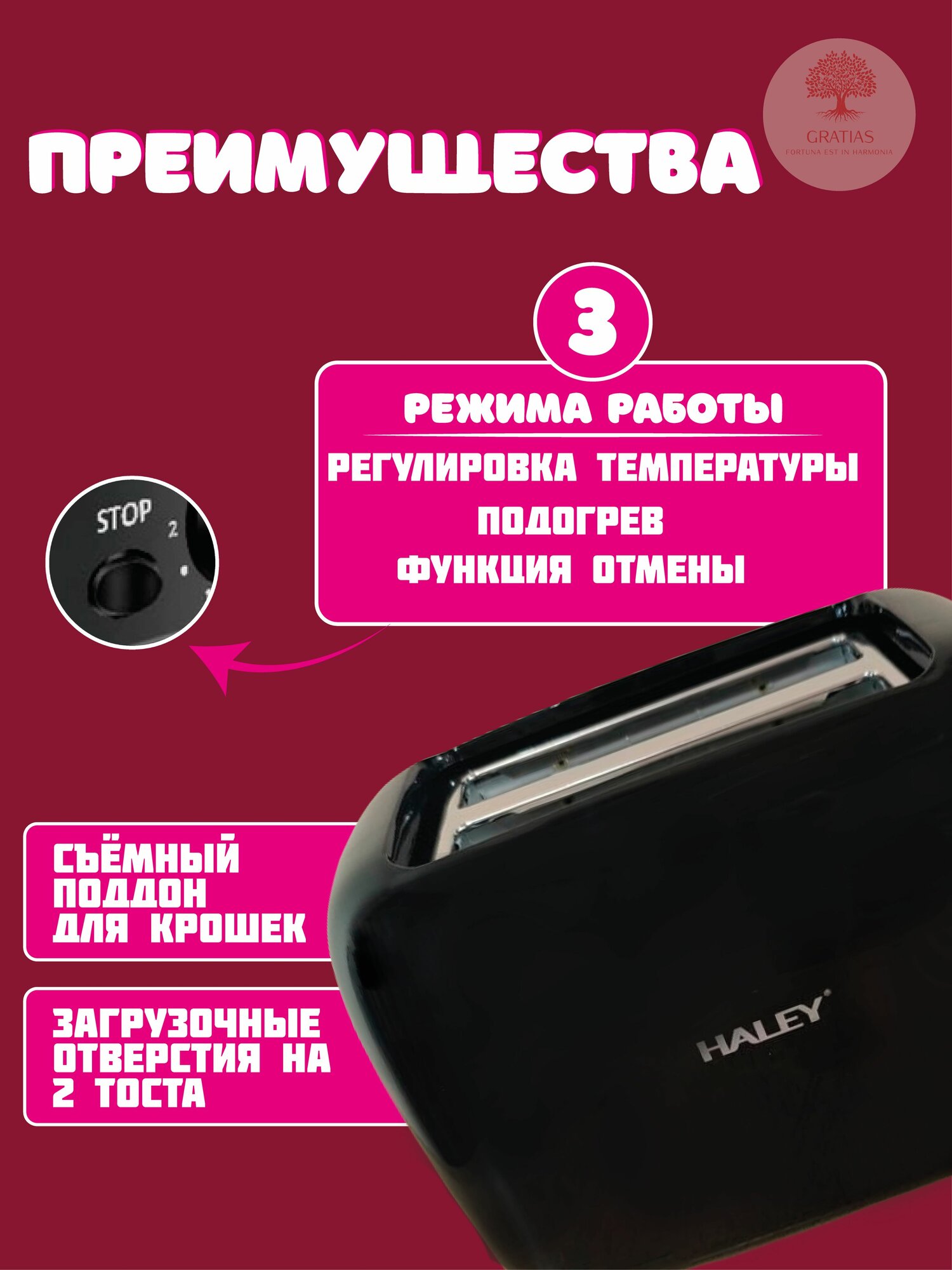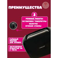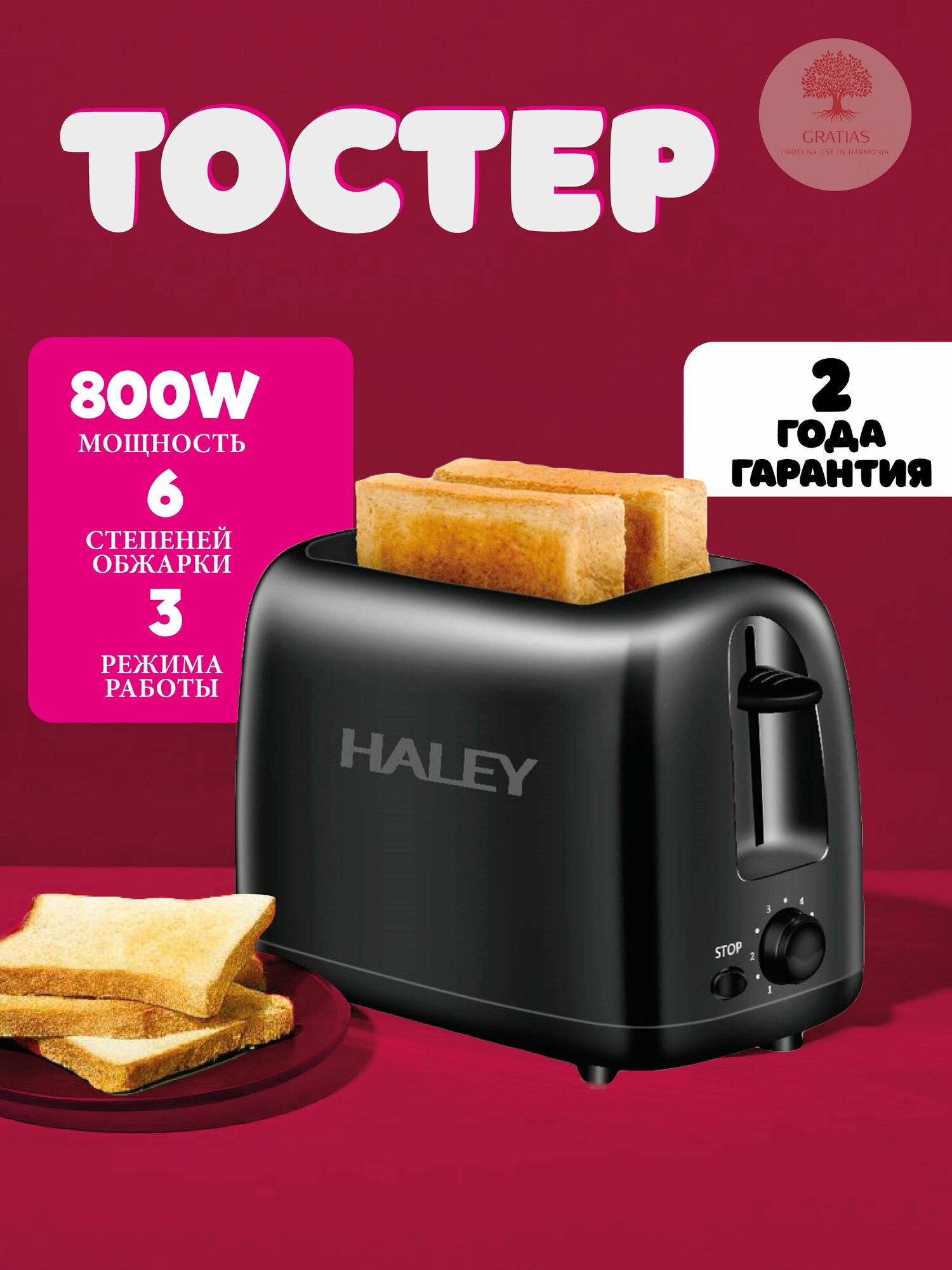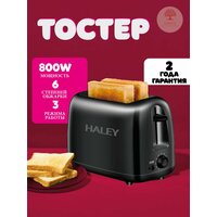 Купить Тостер Haley HY-9604 на 2 тоста, мощность 800 Ватт, 6 степеней прожарки, поддон для сбора крошек, цвет чёрный с доставкой по всей России.