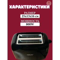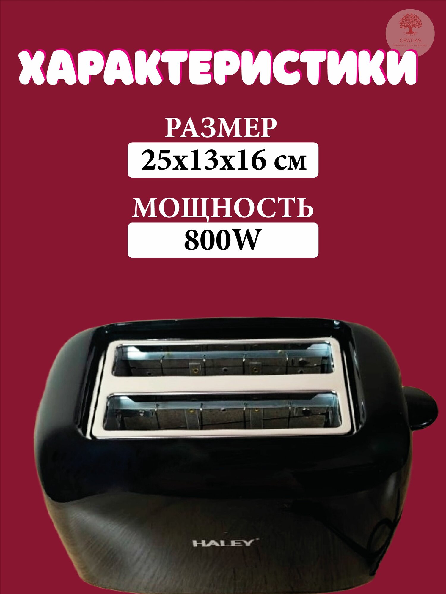 Тостер Haley HY-9604 на 2 тоста, мощность 800 Ватт, 6 степеней прожарки, поддон для сбора крошек, цвет чёрный: сравнение цен, характеристики, фото, актуальное наличие и цены.