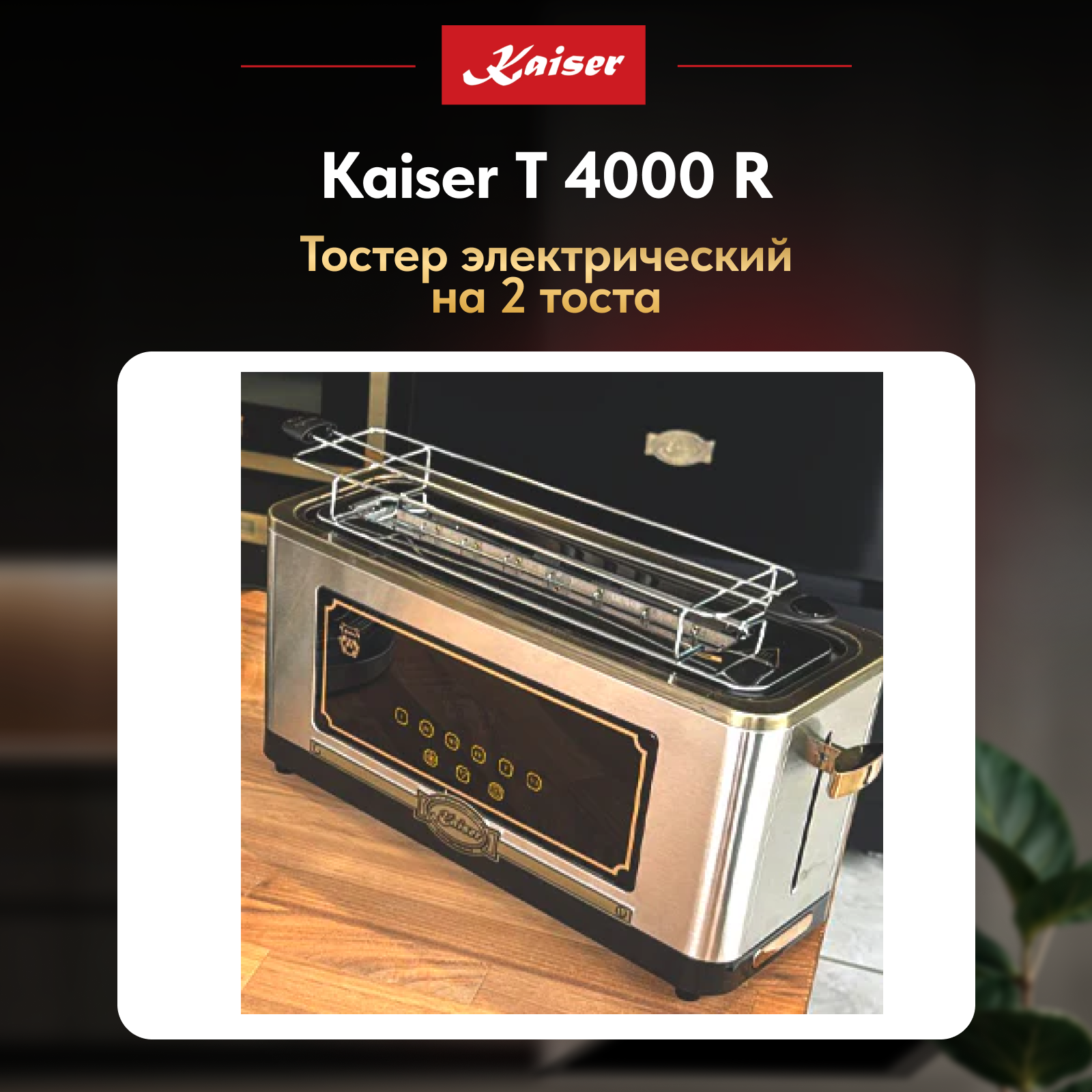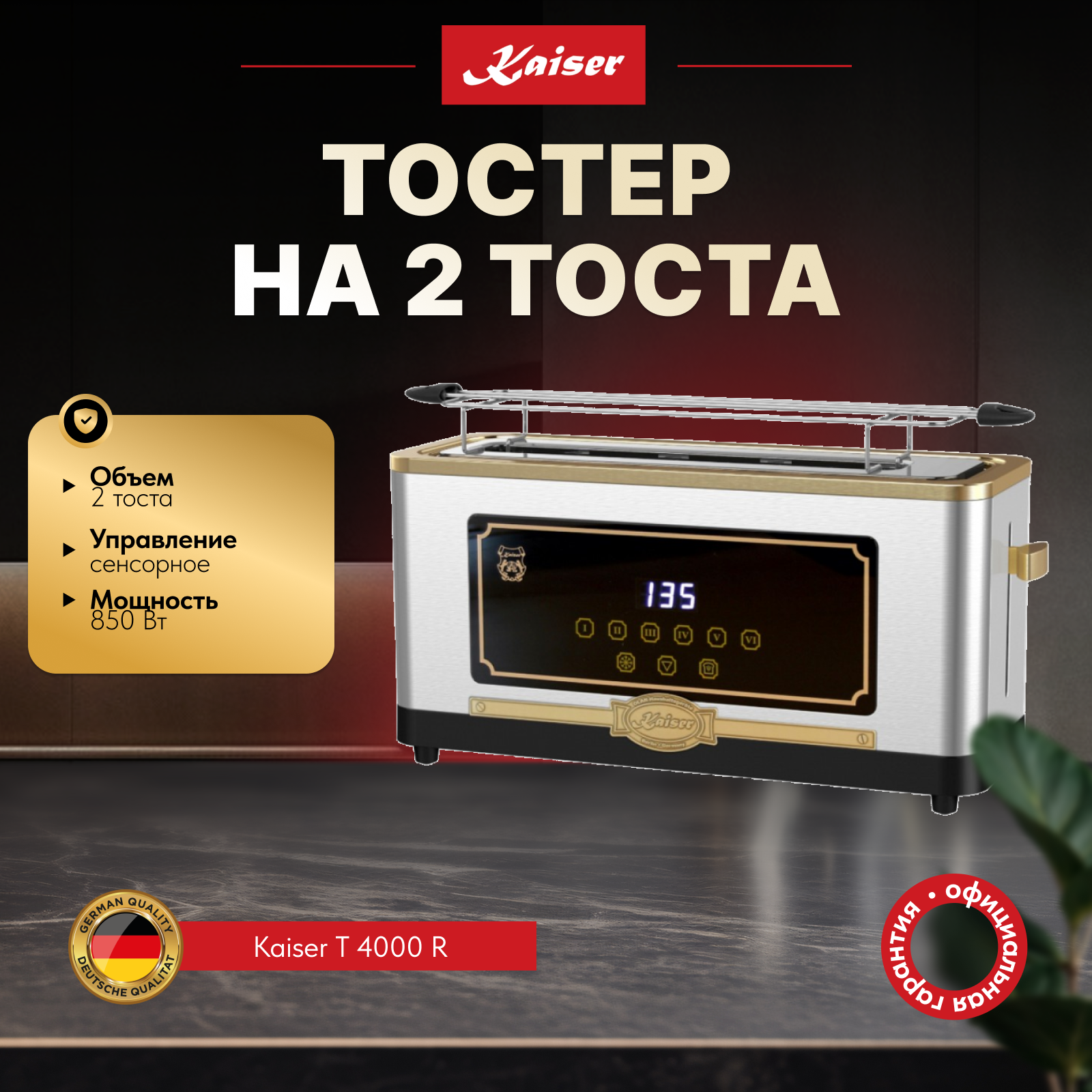 Купить Тостер Kaiser T 4000 R цвет металлический, на два тоста, сенсорный с доставкой по всей России. Тостер Kaiser T 4000 R цвет металлический, на два тоста, сенсорный: сравнение цен, характеристики, фото, актуальное наличие и цены.