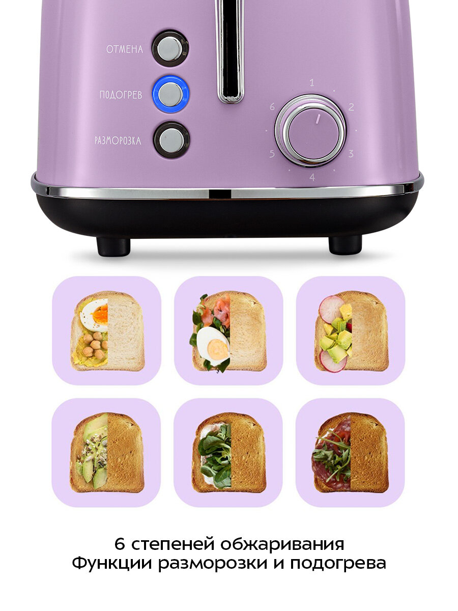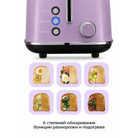 | Дополнительные функции | автоматическое поднятие тостов, автоматическое центрирование тостов, кнопка отмены, регулировка степени обжаривания |