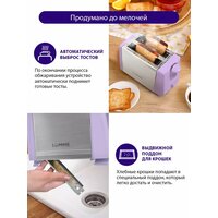 Тостер Lumme LU-1201 имеет 6 режимов, которые позволят регулировать степень обжарки хлеба. Устройство оснащено 2 отсеками для одновременного обжаривания 2 кусочков хлеба и съёмным поддоном для сбора крошек, что существенно упрощает его очистку. Функция автоматического отключения при перегреве обеспечивает безопасность использования прибора и полностью исключает риск получения ожога. Корпус тостера изготовлен из пищевой нержавеющей стали и термостойкого пластика, что делает прибор экологичным. Благодаря минималистичному дизайну и разнообразию цветовых решений тостер гармонично впишется в интерьер любой кухни.