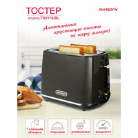Компактный чёрный тостер TS2115 Oursson мощностью 930 Вт выполнен в классическом стиле из высокопрочного пищевого пластика, Прибор рассчитан на 2 ломтика хлеба - аппетитные румяные тосты идеально дополнят ваш завтрак! Прибор имеет 7 степеней обжарки, а также функции размораживания и подогрева. Тосты будут расположены точно по центру, благодаря автоматическому центрированию. Остановить приготовление можно в любое время с помощью кнопки "Отмена". Предусмотрен съемный поддон для крошек и специальные выступы на дне устройства - для компактного хранения шнура. Тостер TS2115 выполнен в едином стиле с чайником KE1747G.