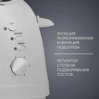 Тостер POLARIS PET 0702L, 750 Вт, 2 тоста, 6 режимов, механическое управление, пластик, белый, 03277