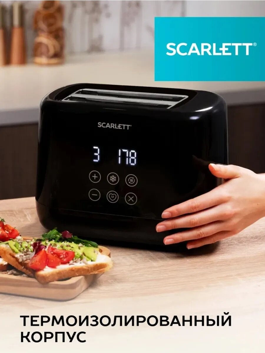 Купить Тостер Scarlett SC-TM11069, 2 тоста, 3 режима, сенсорное управление, дисплей, 850 Вт, черный с доставкой по всей России.