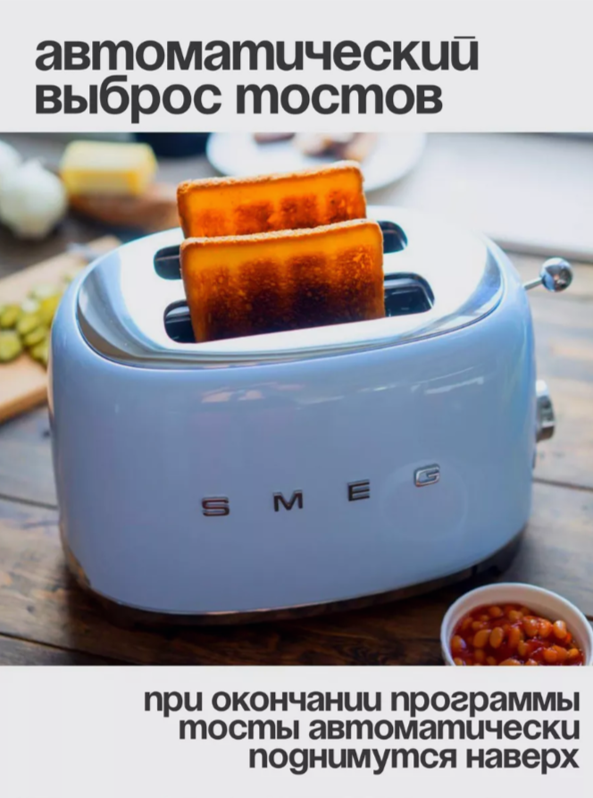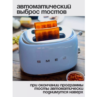 Тостер SMEG TSF01PBEU на 2 ломтика; подогрев, размораживание, багель; 6 ур. поджарки; съемный поддон