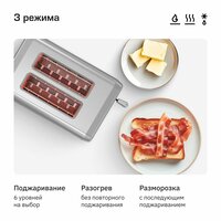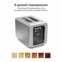Шесть уровней поджаривания позволяют точно настроить степень поджаривания по вашему вкусу. Функция автоматического отключения по окончанию готовки гарантирует безопасность и экономию энергии, а возможность отмены на любой стадии приготовления обеспечивает дополнительное удобство. Для поддержания чистоты предусмотрен съемный поддон для крошек, который легко очищается.