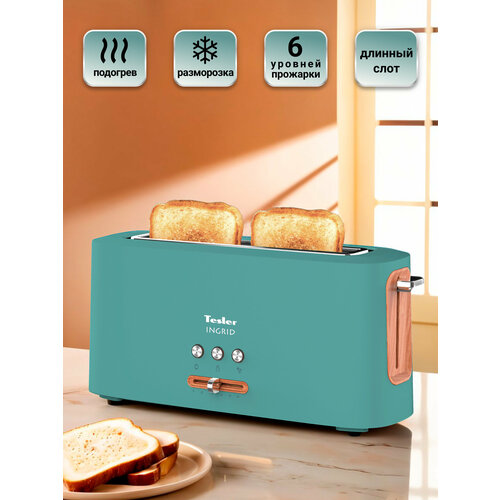 Купить Тостер TESLER TT-140 PINE GREEN, 6 уровней прожарки, 980 Вт, длинный слот на два тоста, подсветка кнопок, разморозка с доставкой по всей России. Тостер TESLER TT-140 PINE GREEN, 6 уровней прожарки, 980 Вт, длинный слот на два тоста, подсветка кнопок, разморозка: сравнение цен, характеристики, фото, актуальное наличие и цены.