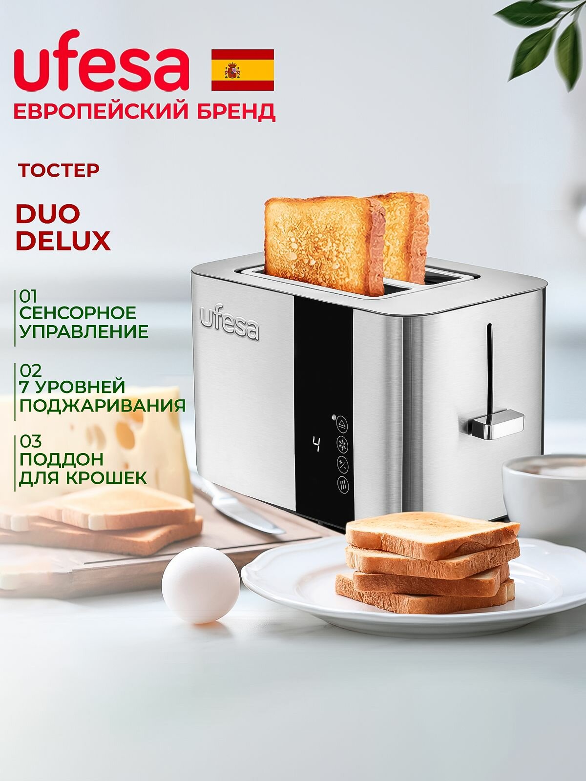 Тостер для хлеба с поддоном для крошек UFESA DUO DELUX, сенсорное управление, ЖК дисплей, 2 слота: сравнение цен, характеристики, фото, актуальное наличие и цены.