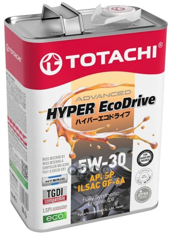 TOTACHI Hyper Ecodrive 5W-30 обеспечивает великолепную защиту от износа, стойкость к высокотемпературному окислению, отличные моющие свойства.