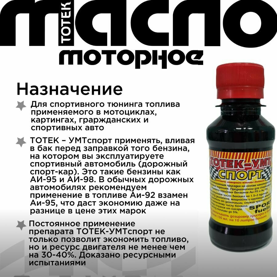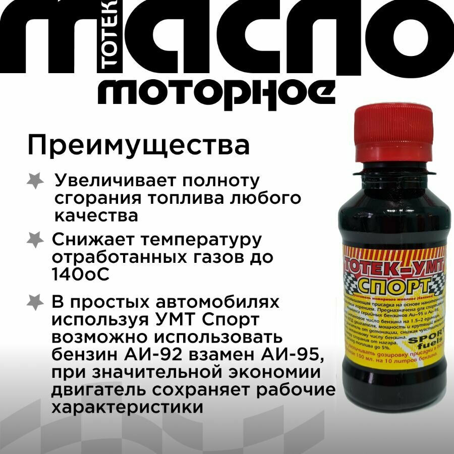 Купить Тотек Усилитель моторного топлива УМТ-Спорт 100мл 5шт с доставкой по всей России. Тотек Усилитель моторного топлива УМТ-Спорт 100мл 5шт: сравнение цен, характеристики, фото, актуальное наличие и цены.