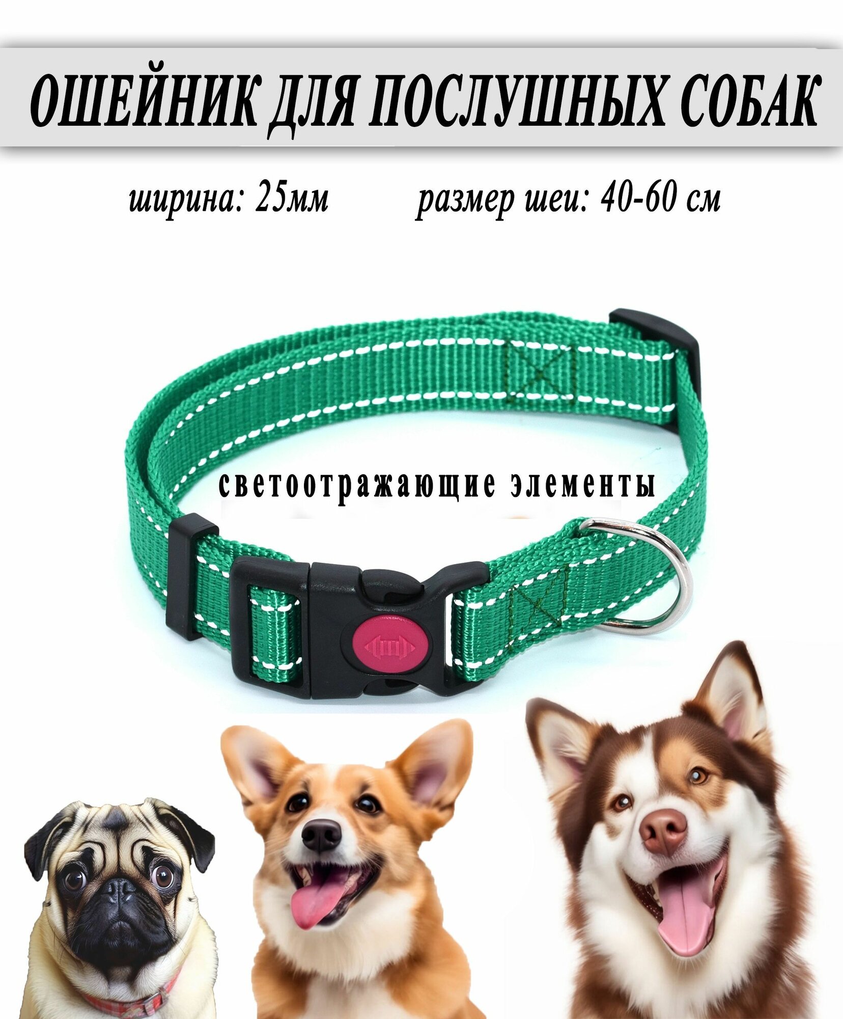 Товары для домашних животных Ошейник для собак, зеленый, светоотражающий 25мм (40-60см): сравнение цен, характеристики, фото, актуальное наличие и цены.