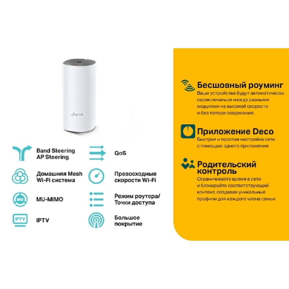 Mesh-Система TP-Link Deco M4 (1-pack) – Ваш идеальный Wi-Fi мир! Представляем вам Mesh-систему TP-Link Deco M4 (1-pack) – надежное и элегантное решение для создания беспроводной сети, которое изменит ваше представление о Wi-Fi! Если вы устали от слабого сигнала, постоянных разрывов и мертвых зон в вашем доме, Deco M4 – это именно то, что вам нужно. Уникальные особенности, которые вы оцените: Двухдиапазонная скорость до AC1200: Наслаждайтесь молниеносной скоростью интернета, которая поддерживает все ваши устройства – от смартфонов до смарт-телевизоров. Работайте, играйте и смотрите фильмы без задержек! Простота установки и управления: Установите систему всего за несколько минут с помощью интуитивно понятного приложения TP-Link. Управляйте настройками сети, контролируйте доступ и следите за безопасностью – всё в одном месте! Полное покрытие без мертвых зон: Забудьте о том, что Wi-Fi не достигает некоторых уголков вашего дома. Mesh-система создаёт единую сеть, обеспечивая стабильный сигнал в каждой комнате, даже в самых удаленных местах. Умное управление трафиком: Deco M4 использует интеллектуальные алгоритмы, которые оптимизируют распределение трафика, обеспечивая максимально быстрое соединение для всех ваших устройств. Почему стоит выбрать TP-Link Deco M4? Представьте, как вы наслаждаетесь любимым сериалом на диване, а ваши дети играют в онлайн-игры в другой комнате, и все это происходит без перебоев и замедлений! Mesh-система TP-Link Deco M4 – это не просто роутер, это ваш надежный помощник в создании комфортного цифрового пространства. С Deco M4 вы не просто улучшаете качество интернет-соединения – вы трансформируете свою повседневную жизнь, делая её более продуктивной и приятной. Идеально подходит для семей, работающих из дома и любителей потокового видео! Закажите сейчас и ощутите разницу! Не упустите возможность обновить свою сеть с Mesh-системой TP-Link Deco M4! Обеспечьте себе и своим близким стабильное и высокоскоростное соединение, которое будет радовать вас каждый день. Закажите сейчас и начните наслаждаться безграничными возможностями вашего интернета!