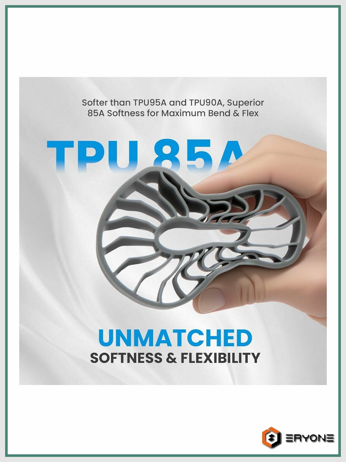 TPU 85A Standard 1,75 мм 1 кг от Eryone - это высококачественный термопластичный полиуретан, предназначенный для 3D-печати. Он прочный и гибкий одновременно, что позволяет получать высокоточные детали с высокой детализацией. TPU 85A обладает выдающейся гибкостью и эластичностью, обеспечивая более мягкое ощущение по сравнению с филаментами 95A и 90A. Это идеальный выбор для создания прочных, гибких деталей, требующих высокой эластичности и длительного срока службы.