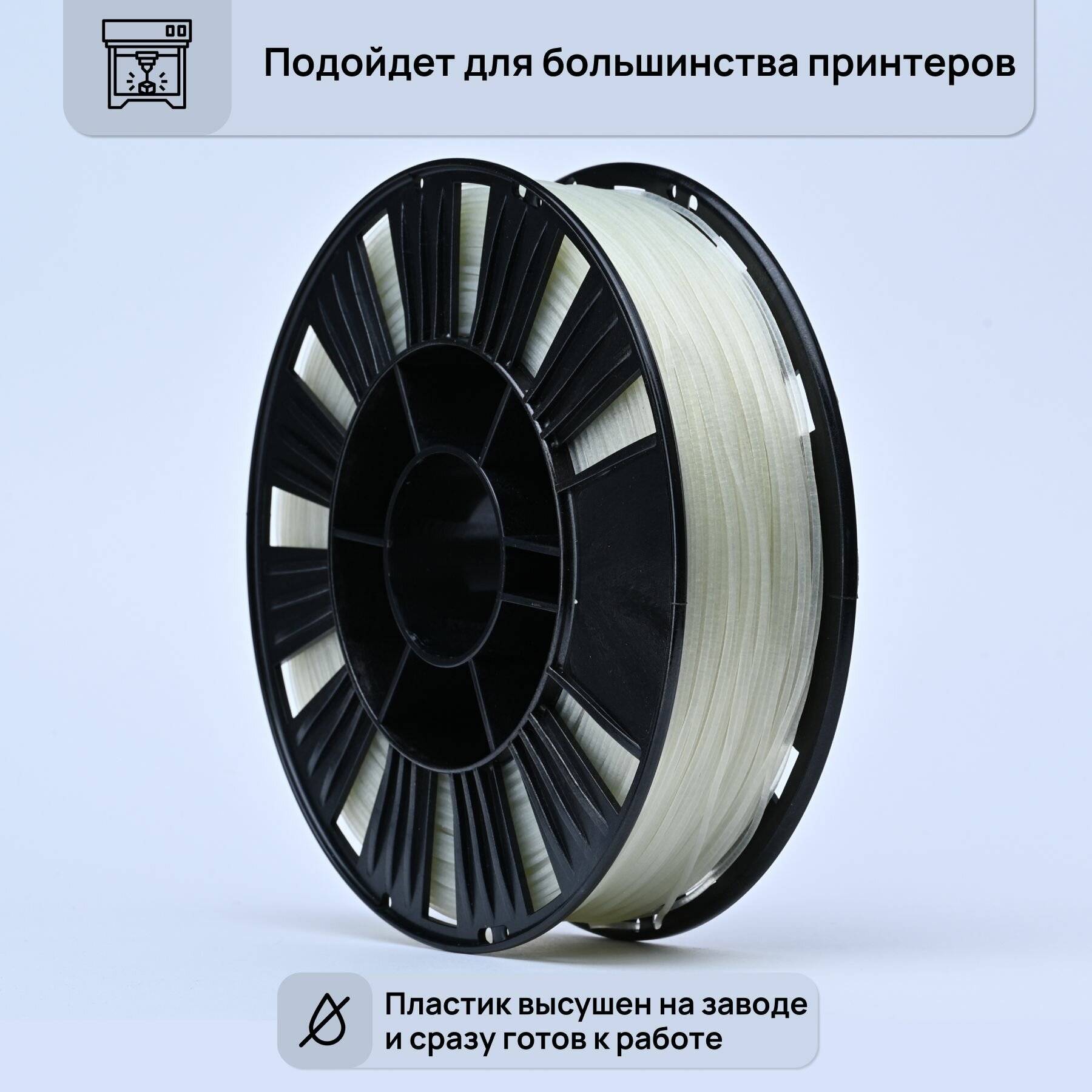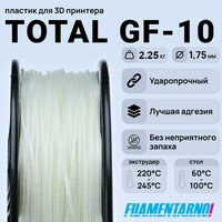 Пластик TPU Total Pro GF-10 от Filamentarno для 3D-принтера TPU Total Pro GF-10 - ударопрочный стеклонаполненный (10%) композит на основе TPU. Часто применяется для печати крупных шестерён, прочных корпусов, механически нагруженных деталей, аэродинамических обвесов для автомобилей. Обладает высокой химической стойкостью к растворам кислот и щелочей, жирам, маслам, ксилолу, дизельному топливу. Ограниченно к бензину, керосину, ацетону, дихлометану. TOTAL GF-10 станет прекрасной альтернативой композитам на основе полиамидов. Отлично поддаётся сверлению, нарезанию резьбы. Преимущества пластика TPU Total Pro GF-10 от Filamentarno: * Ударопрочный * Низкая усадка * высокая химическая стойкость к кислотам, щелочам, жирам, маслам, ксилолу, дизельному топливу * ограниченная стойкость к бензину, керосину, ацетону, дихлометану * поддается механической обработке * высокая температура термостойкости * хорошая межслойная адгезия * высокая абразивная стойкость Технические характеристики пластика TPU Total Pro GF-10 от Filamentarno: * Теплостойкость (min / max)от -50 до +110°С * Температура размягчения по вика 110° * Плотность~1.4 гр/см3 * Твердость по Шору D 85 * Усадка при изготовлении изделий 0.3-0.9% * Количество пластика на катушке 0,75 кг ~215 м Параметры печати пластика TPU Total Pro GF-10 от Filamentarno: * Температура сопла 220-245°С * Температура печатного стола 60-100° * Обдув модели по необходимости 20-60% * Скорость печати до 100 мм/с * Подача пластика (Flow)95-100% * Диаметр сопла от 0.4 мм (min) * Мин. высота слоя 0.1 мм Форма выпуска пластика APU Total Pro GF-10 от Filamentarno: * катушки D200 по 0,75 кг (стандартные катушки в коробках) * катушки D300 по 2,25 кг * мотки 50 метров Общие рекомендации по пластику TPU Total Pro GF-10 от Filamentarno: 1. Обязательно рекомендуется сушить перед печатью 4-5 ч. при температуре 65-75°С. 2. Внимание! Пластик абразивен, рекомендуется печатать с использованием стального сопла. Пластик TPU Total Pro GF-10 от Filamentarno для 3D-принтера отличный выбор для создания прочных и надежных изделий