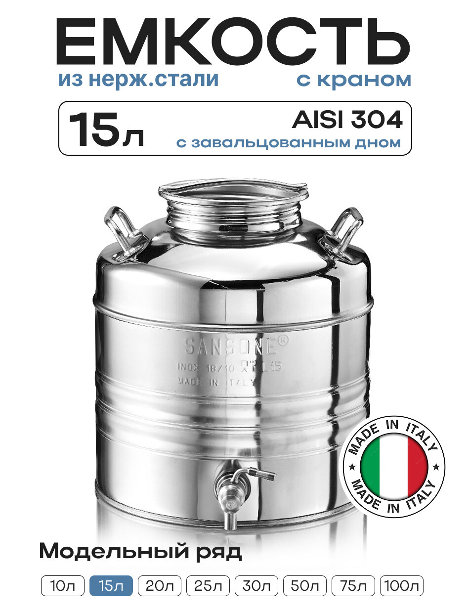 Бидон (фляга) из нержавеющей стали 15 л с краном от Sansone c завальцованным дном: сравнение цен, характеристики, фото, актуальное наличие и цены.