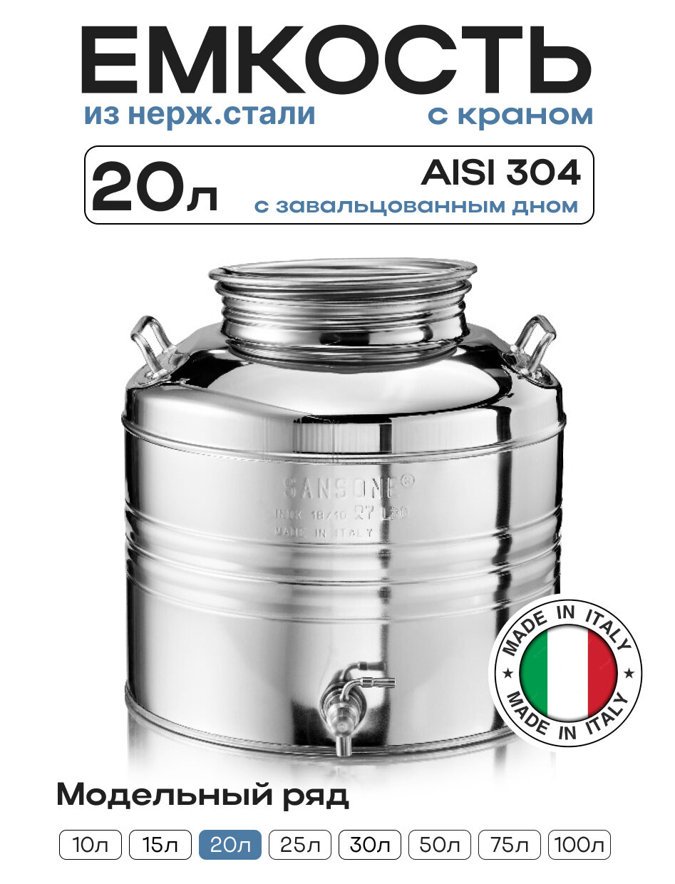 Бидон (фляга) из нержавеющей стали 20 л с краном от Sansone c завальцованным дном: сравнение цен, характеристики, фото, актуальное наличие и цены.