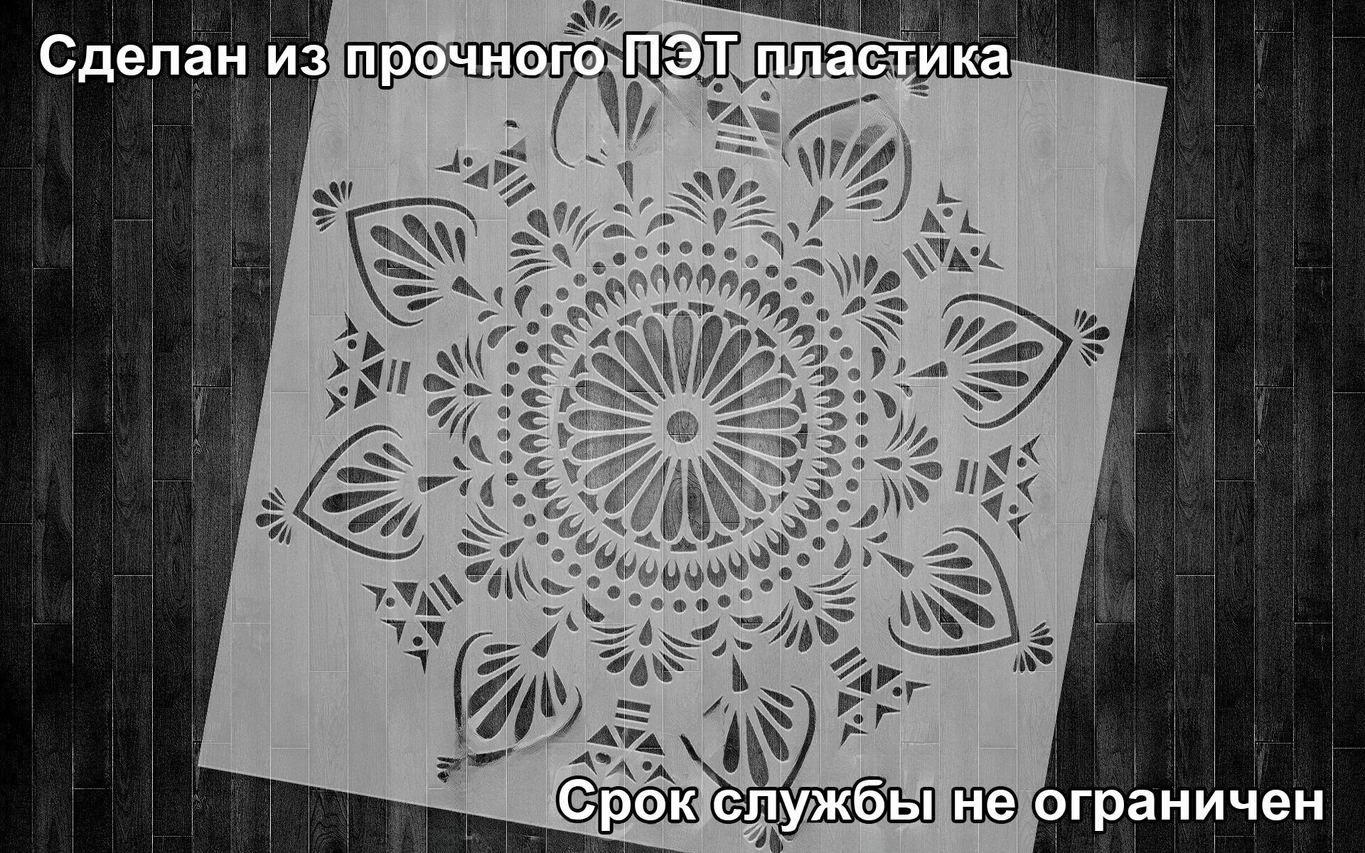 Трафарет, который поможет создать красивый и оригинальный узор на стенах, окнах и мебели. Трафарет имеет размер 85 х 85 см и прозрачный цвет. Он изготовлен из прочного пластика, что позволяет использовать его многократно. Трафарет легко крепится к поверхности с помощью малярного скотча. Толщина трафарета 1,2мм. Многоразовое использование: вы можете использовать его несколько раз, не тратя деньги на новые. Прочный материал: пластик обеспечивает долговечность трафарета и его устойчивость к повреждениям. Простота использования: трафарет легко крепить к поверхности и снимать с нее, не оставляя следов. Широкий спектр применения: трафарет подходит для нанесения узоров на стены, мебель, окна и другие поверхности. Красивый узор: трафарет позволяет создать оригинальный и красивый узор, который будет привлекать внимание. Трафарет изготовлен из PGX пластика. PGX - это лучший материал для изготовления многоразовых пластиковых трафаретов. PGX в 1.5 раза прочнее, чем ПЭТ, в 2 раза более устойчив к деформациям от изменения температур, чем ПНД и полипропилен, в 3 раза тверже, чем ПВХ.