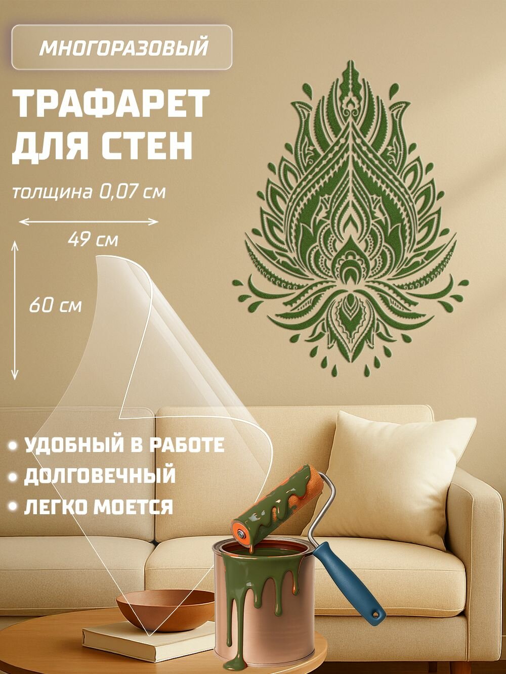 Трафарет для стен, Многоразовый — Лотос; Размер 49х60 см — ПЭТ 0,7 мм: сравнение цен, характеристики, фото, актуальное наличие и цены.