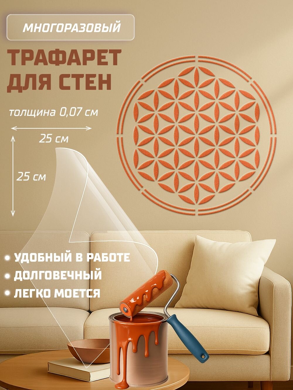 Купить Трафарет для стен, Многоразовый — Цветок жизни; Размер 25х25 см — ПЭТ 0,7 мм с доставкой по всей России. Трафарет для стен, Многоразовый — Цветок жизни; Размер 25х25 см — ПЭТ 0,7 мм: сравнение цен, характеристики, фото, актуальное наличие и цены.