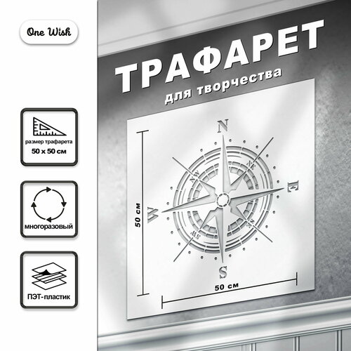 Купить Трафарет «Компас» 50х50 см настенный, выполнен из ПЭТа, многоразовый, OneWish с доставкой по всей России. Трафарет «Компас» 50х50 см настенный, выполнен из ПЭТа, многоразовый, OneWish: сравнение цен, характеристики, фото, актуальное наличие и цены.