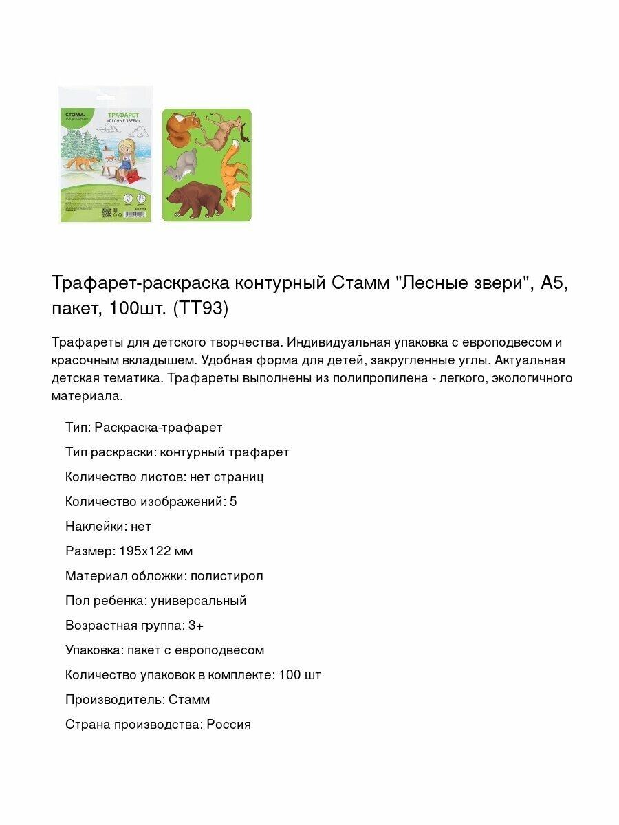 Трафарет-раскраска контурный Стамм «Лесные звери», А5, пакет, 100шт. (ТТ93): сравнение цен, характеристики, фото, актуальное наличие и цены.