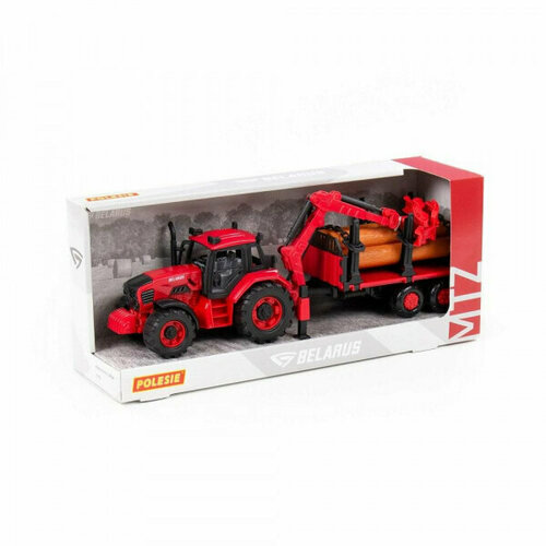 Игрушечный трактор BELARUS с лесовозом ярко-красного цвета в деталях повторяет внешний вид своего реального прототипа. Модель выпушена по лицензии Минского тракторного завода.