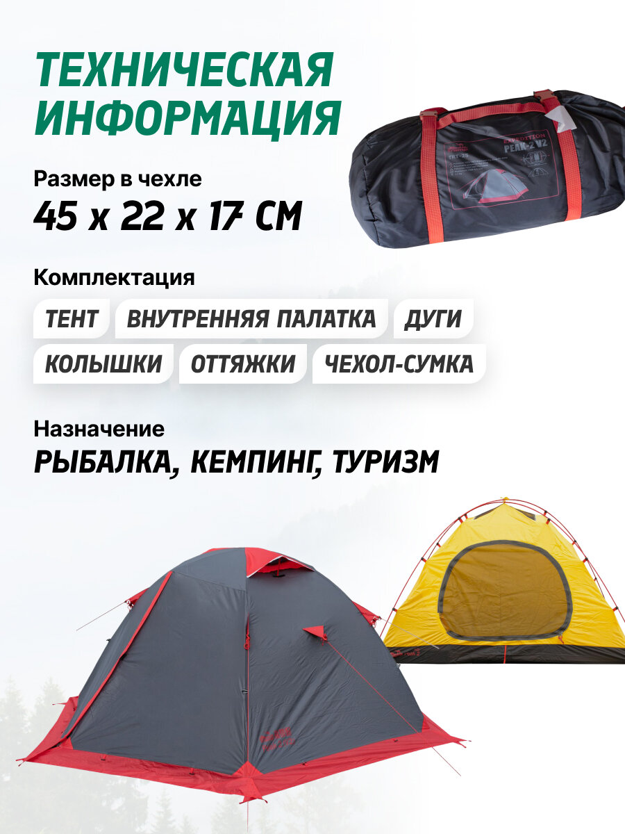 Палатка Tramp Peak 2 идеальна для серьезных длительных туристических походов в любое время года и любых погодных условиях.