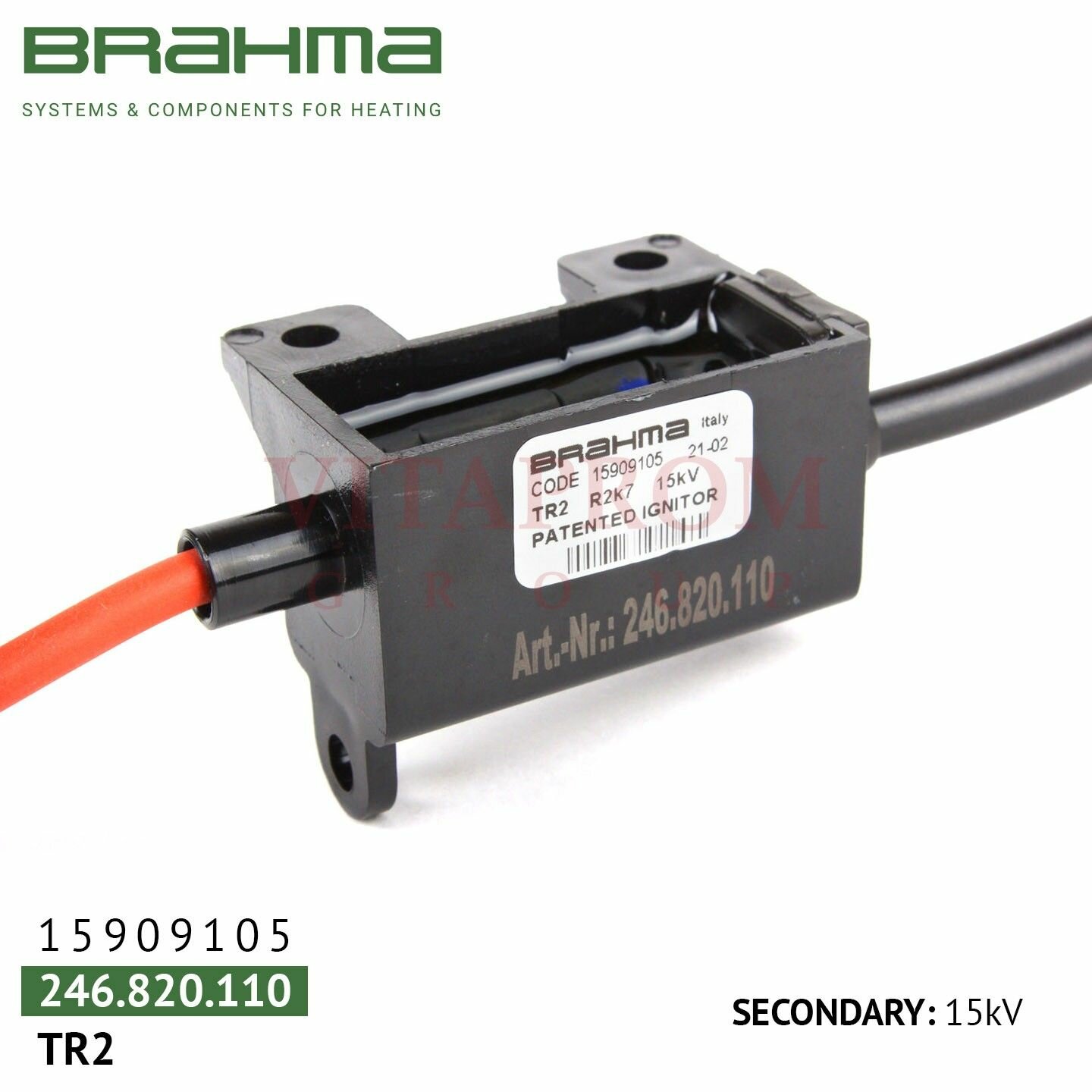 - Трансформатор розжига BRAHMA TR2/A 15909105 устанавливается в любом положении.
