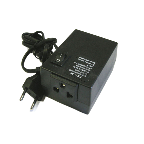Входное напряжение: 220в Выходное напряжение: 110в Выходная мощность: 100Ва Вес нетто: 0,7кг Габариты (ВхШхГ): 90мм х 70мм х 60мм Трансформатор KXT-100 прост в применении: вставляете его в нашу российскую (европейскую) розетку 220 вольт, и уже непосредственно в него вставляете свой прибор, работающий от 100-120 вольт. Обычно эти приборы американского или японского происхождения, поэтому трансформатор оснащён розеткой под американские вилки, и переходник для вилки Вам не понадобится. Обратите внимание на потребляемую мощность подключаемого прибора! Преобразователь KXT-100 должен быть мощнее Вашего прибора порядка 20-30 %.
