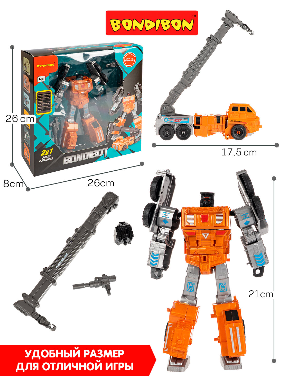 Купить Трансформер BONDIBOT 2в1 робот-автокран оранжевый Bondibon с доставкой по всей России. Трансформер BONDIBOT 2в1 робот-автокран оранжевый Bondibon: сравнение цен, характеристики, фото, актуальное наличие и цены.