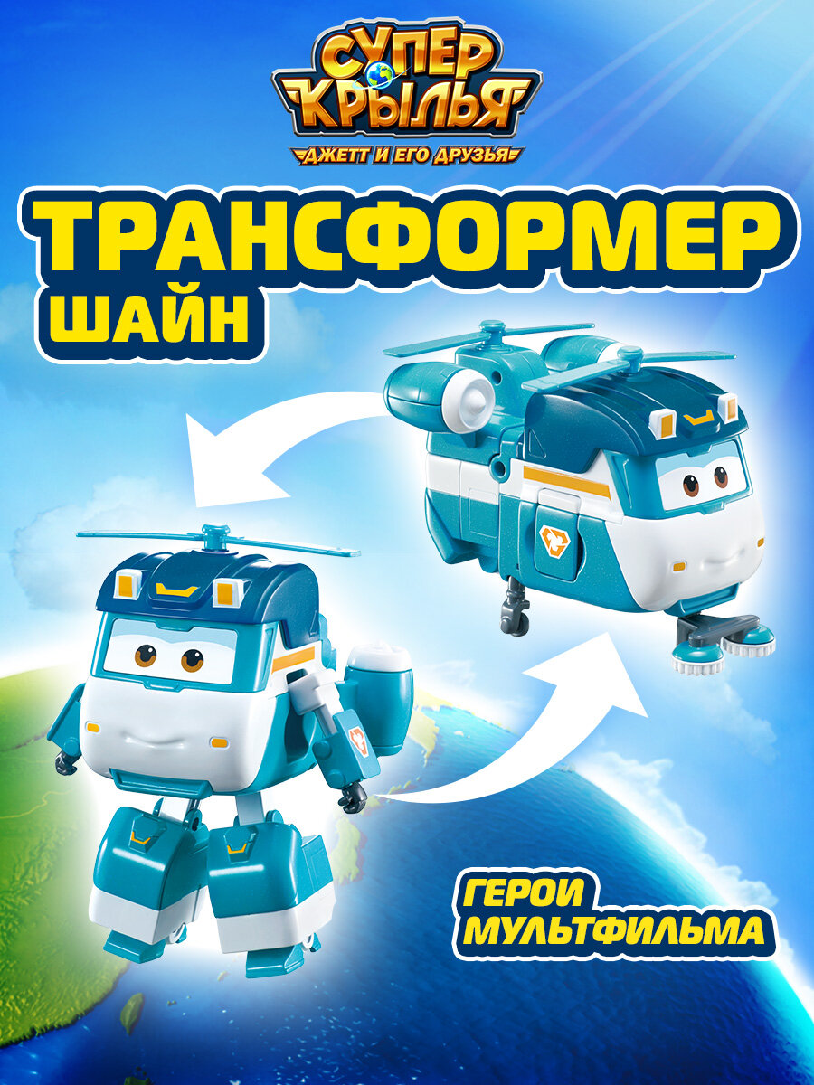 Трансформер Шайн - новый член команды Супер Крыльев! Игрушка трансформер Шайн может трансформироваться из самолёта в робота всего за 10 шагов. Руки и ноги игрушки двигаются. Почувствуй себя героем команды Супер Крыльев! Внимание! Не предназначено для детей младше 3-х лет!