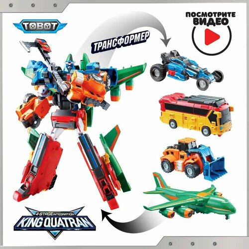 Лицензионная и оригинальная игрушка-трансформер TOBOT Кинг Кватран отлично подойдёт для ребёнка от 4х лет. Робот-трансформер Кинг Кватран - один из главных героев одноимённого мультфильма Тобот Детективы Галактики. Кинг Кватран - это робот-трансформер, который состоит из 4х главных героев мультфильма: Сэнд Кролер, Бас Кинг, Эйр Хайд и Доузер. Каждый из героев комплекта может трансформироваться в машинку ИЛИ в тут или иную часть робота Кинг Кватрана. Каждая машинка по отдельности не трансформируется в отдельного робота воина, только из машинки в часть тела Кинг Кватрана. Интересная многоступенчатая трансформация средней сложности поможет развить мелкую моторику ребёнка, а 100% сходство с героем мультфильма позволит вашему ребёнку окунуться в волшебный мир приключений тоботов. В набор входит инструкция в картинках. В команду новых Тоботов также входят трансформеры: Тайкун, Дикий Шеф, Джет Сандер, Сэнд Кролер, Бас Кинг, Эйр Хайд, Доузер и Кинг Титан. Все герои коллекции продаются отдельно. Материал: пластик. Товар сертифицирован. Собери всех героев легендарной команды классических роботов трансформеров Тоботов!