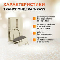 Транспондер T-pass – это приемо-передающее устройство, предназначенное для проведения бесконтактных транзакций при поездке по автомобильным дорогам Государственной компании «Автодор», а также на других платных дорогах России. Устройство работает автономно и не требует дополнительного питания и подзарядки.