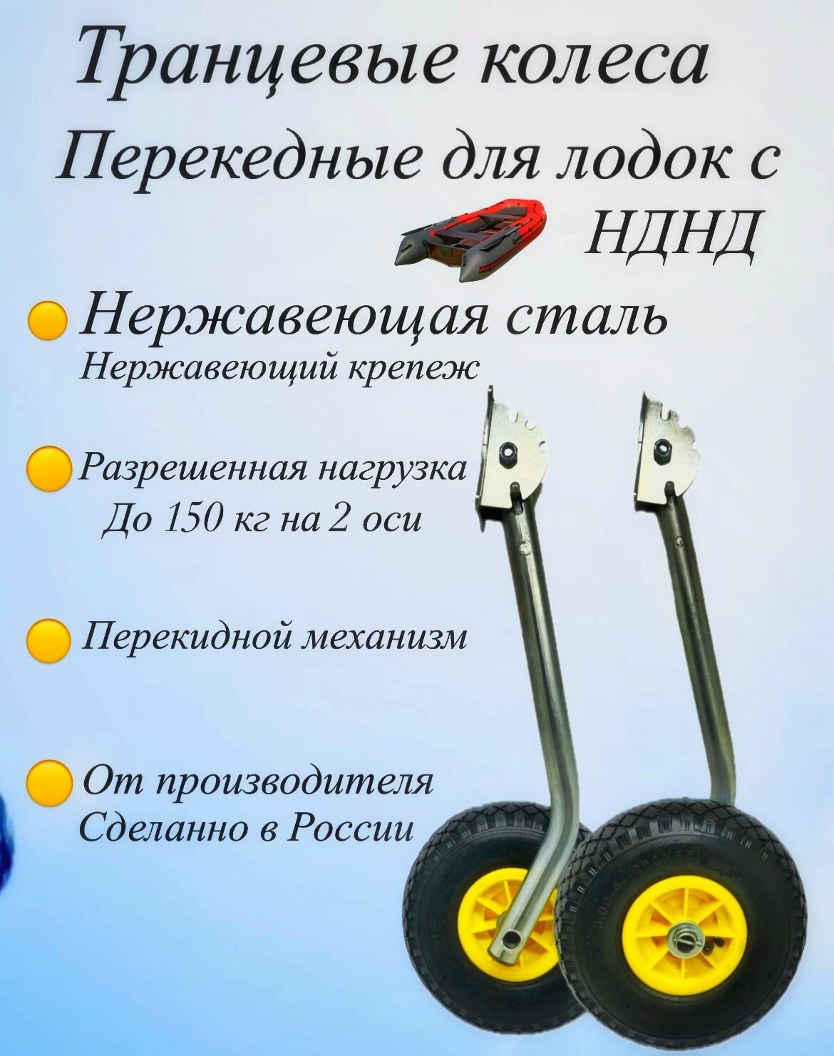 С этими колесами вы сможете легко транспортировать свою лодку по берегу до водоема. Незаменимый аксессуар для любителей летней рыбалки.