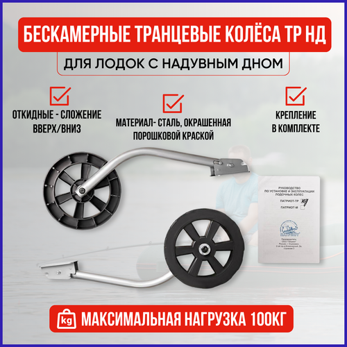 Транцевые колеса бескамерные Патриот ТР трансформеры (откидные) для лодок с дном низкого давления- это перекидные лодочные шасси, предназначенные для перевозки надувной лодки по суше, в т. ч. с установленным подвесным мотором, спуска на воду и вывода из воды на берег вручную одним человеком. Применение шасси на надувных лодках облегчает возможность подготовки лодки и эксплуатации в одиночку, обеспечивая владельцу независимость на рыбалке. Окрашены порошковой краской во избежании коррозии. Колеса "Патриот" рассчитаны на транспортировку лодки максимальным (лодка+мотор+снаряжение) весом до 100 кг. Максимальная грузоподъемность: 100 кг.