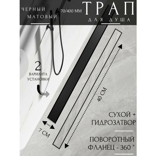 Представляем вашему вниманию черный матовый трап для душа, который станет идеальным решением для вашей ванной комнаты. Этот душевой трап предназначен для установки под плитку, обеспечивая элегантный и современный вид. Его длина составляет 400 мм, что делает его универсальным выбором для различных размеров душевых кабин.