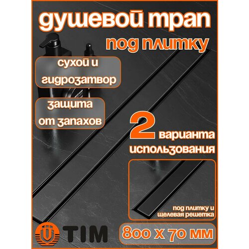 Трап для душа черный матовый под плитку, 800 мм, из нержавеющей стали, с сухим и гидрозатвором BAD558002BK: сравнение цен, характеристики, фото, актуальное наличие и цены.