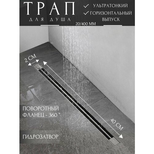 Система оснащена горизонтальным выпуском, что значительно упрощает монтаж и позволяет настроить слив в душевой под конкретные условия вашего интерьера. Поворотный фланец с возможностью вращения на 360 градусов гарантирует гибкость в установке, а гидрозатвор предотвращает неприятные запахи из канализации.