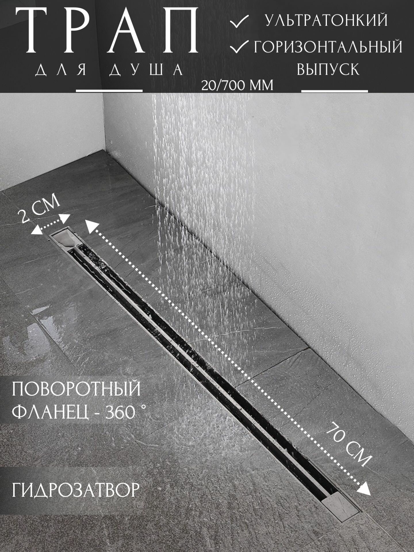 Трап для душа Evolux Slim – это идеальное решение для современного дизайна ванной комнаты. Он представляет собой линейный душевой слив длиной 700 мм и шириной 20 мм, который легко интегрируется в любую отделку, включая плитку. Это щелевой душевой трап обеспечивает эффективный водоотвод благодаря своей конструкции.