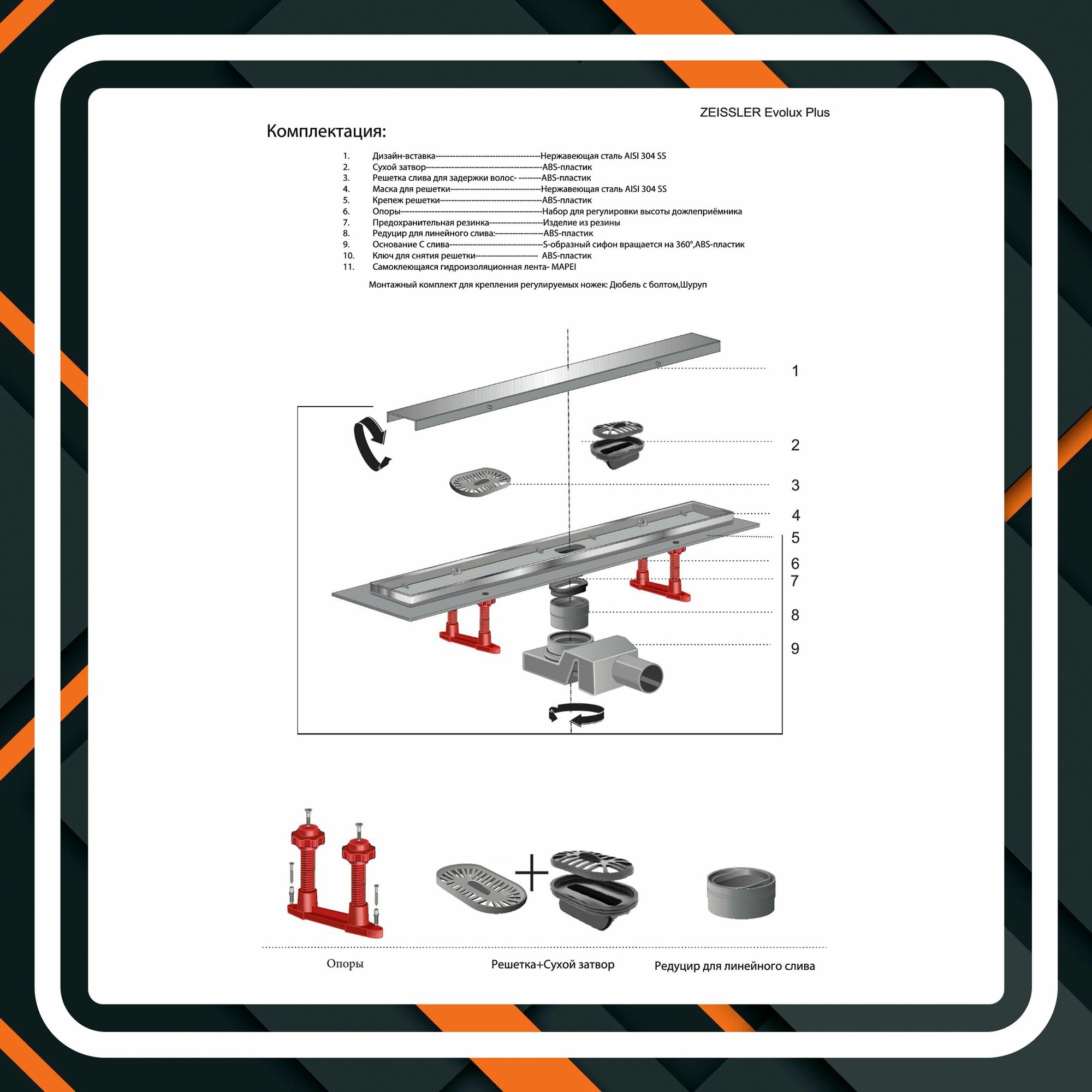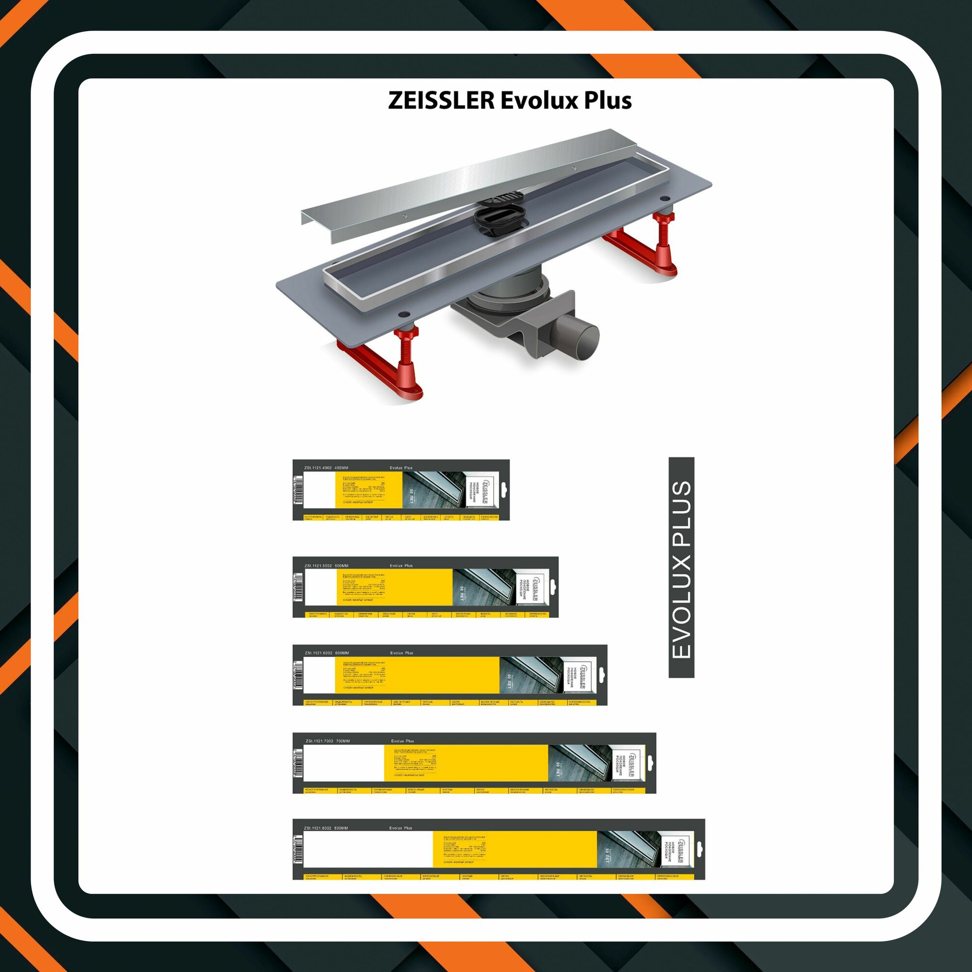 Трап для душа под плитку с двухсторонней решеткой ZEISSLER Evolux Plus ZSt.1121.7002 — 66х700 мм: сравнение цен, характеристики, фото, актуальное наличие и цены.